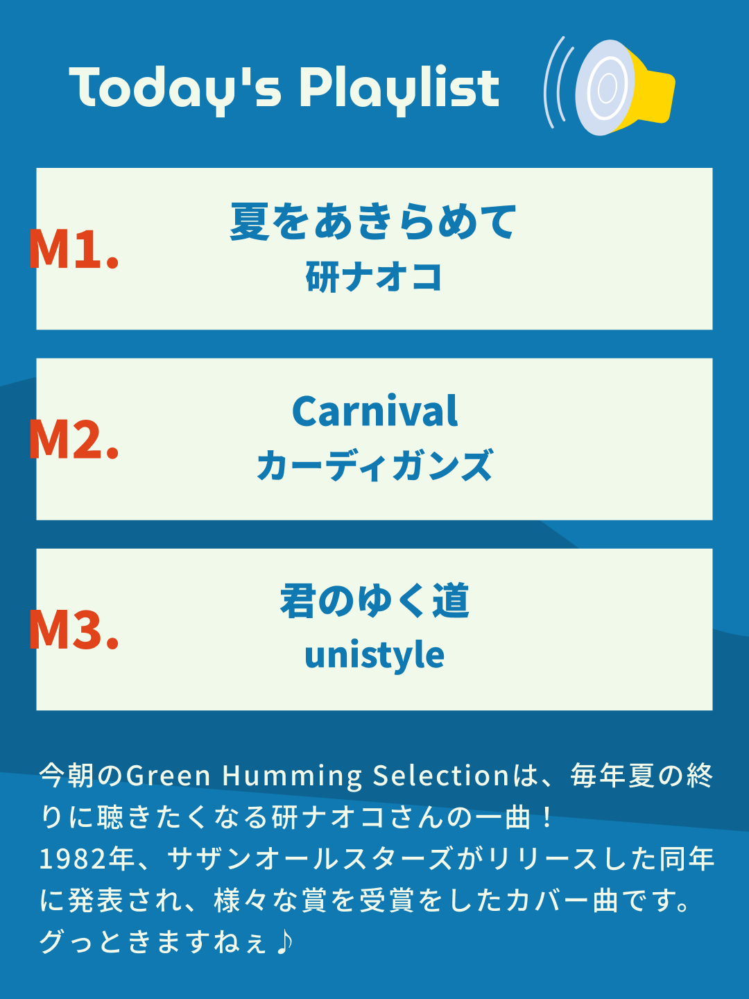 今朝のGreen Humming Selectionは、毎年夏の終りに聴きたくなる研ナオコさんの一曲。 1982年、サザンオールスターズがリリースした同年に発表され、様々な賞を受賞をしたカバー曲です♪