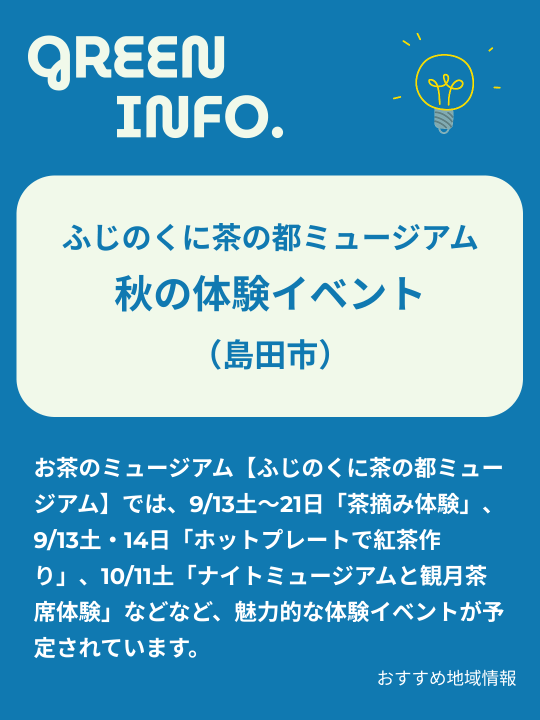 ▼ふじのくに茶の都ミュージアム|秋の体験イベント(島田市)
