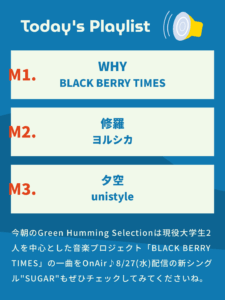 現役大学生2人を中心とした音楽プロジェクト「BLACK BERRY TIMES」の一曲をOnAir♪
