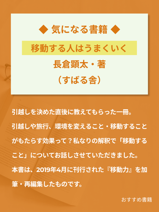 引越しを決めた矢先に教えてもらった一冊。引越しや旅行、環境を変えること・移動することがもたらす効果って?