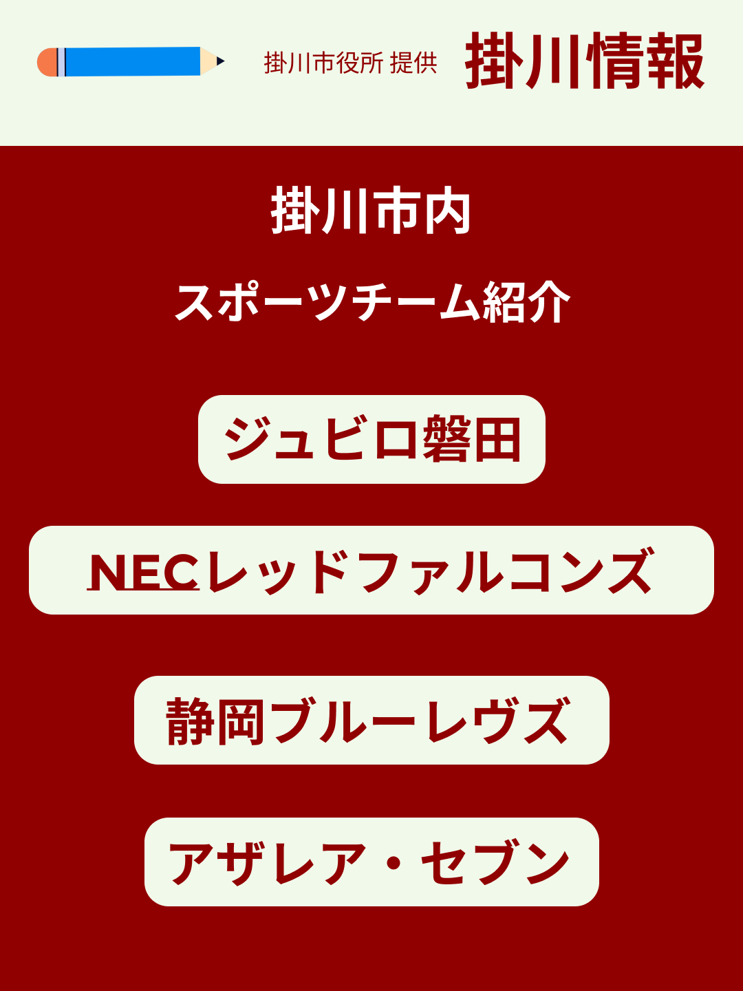 「掛川市内 スポーツチーム紹介」