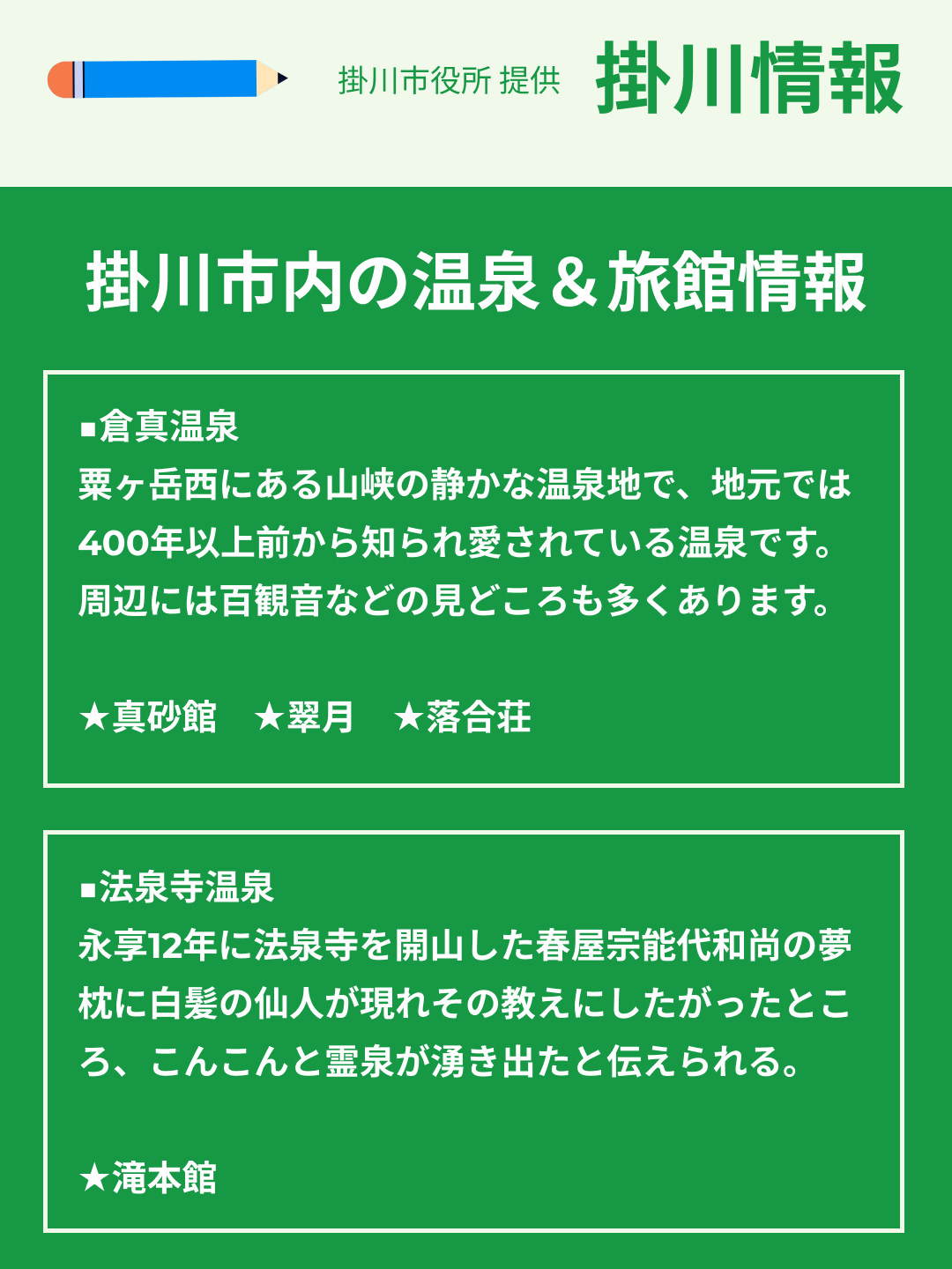 「掛川市内の温泉&旅館情報」