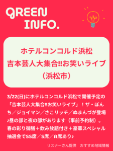 ▼吉本芸人大集合!!お笑いライブ in ホテルコンコルド浜松(浜松市)